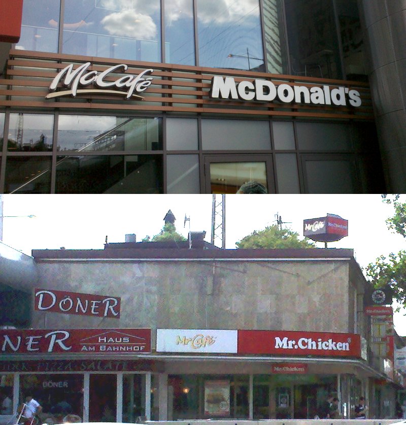 Ein vielleicht weniger bedeut- als unterhaltsames Detail ist dabei, dass die McDonald's-Filiale im Norden des Bahnhofs ihren Standort geändert hat: Sie befindet sich jetzt (im Vergleich zu StreetView) auf der anderen Straßenseite und bietet außerdem einen weit attraktiveres Erscheinungsbild, während an ihrem ursprünglichen Standort ein "MrChicken" eingezogen ist, dessen Logo (man beachte "MrCafe") eine beachtliche Ähnlichkeit mit dem Schriftzug seines Vorgängers aufweist - ein Schelm, wer etwas Böses dabei denkt.[1]